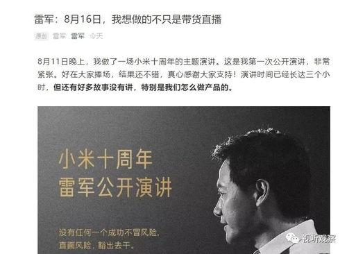 亲爱的读者们,你是否也和我一样,对科技圈的大佬们充满好奇?今天,我要和你分享一个超级劲爆的消息——小米直播间的雷军爆料视频!没错,就是那个我们熟悉的雷布斯,他在视频中透露了哪些秘密呢?让我们一起揭开这个神秘的面纱吧!
